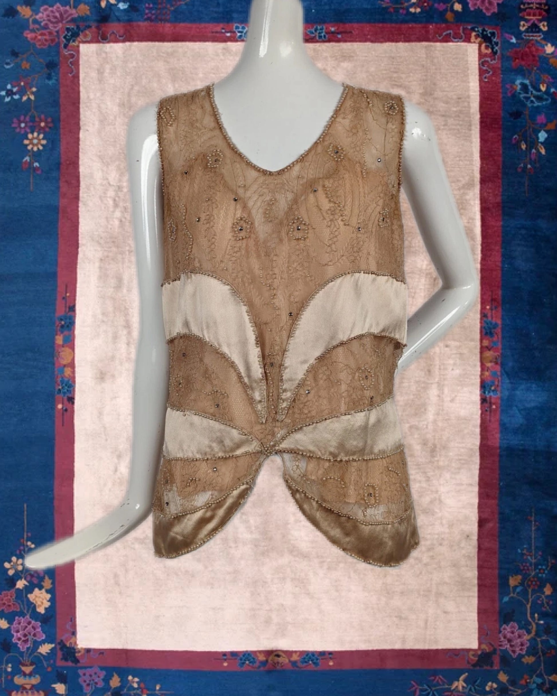 Perfect for vintage enthusiasts, historical costume collectors, or anyone seeking a one-of-a-kind antique lace top from the Roaring Twenties.