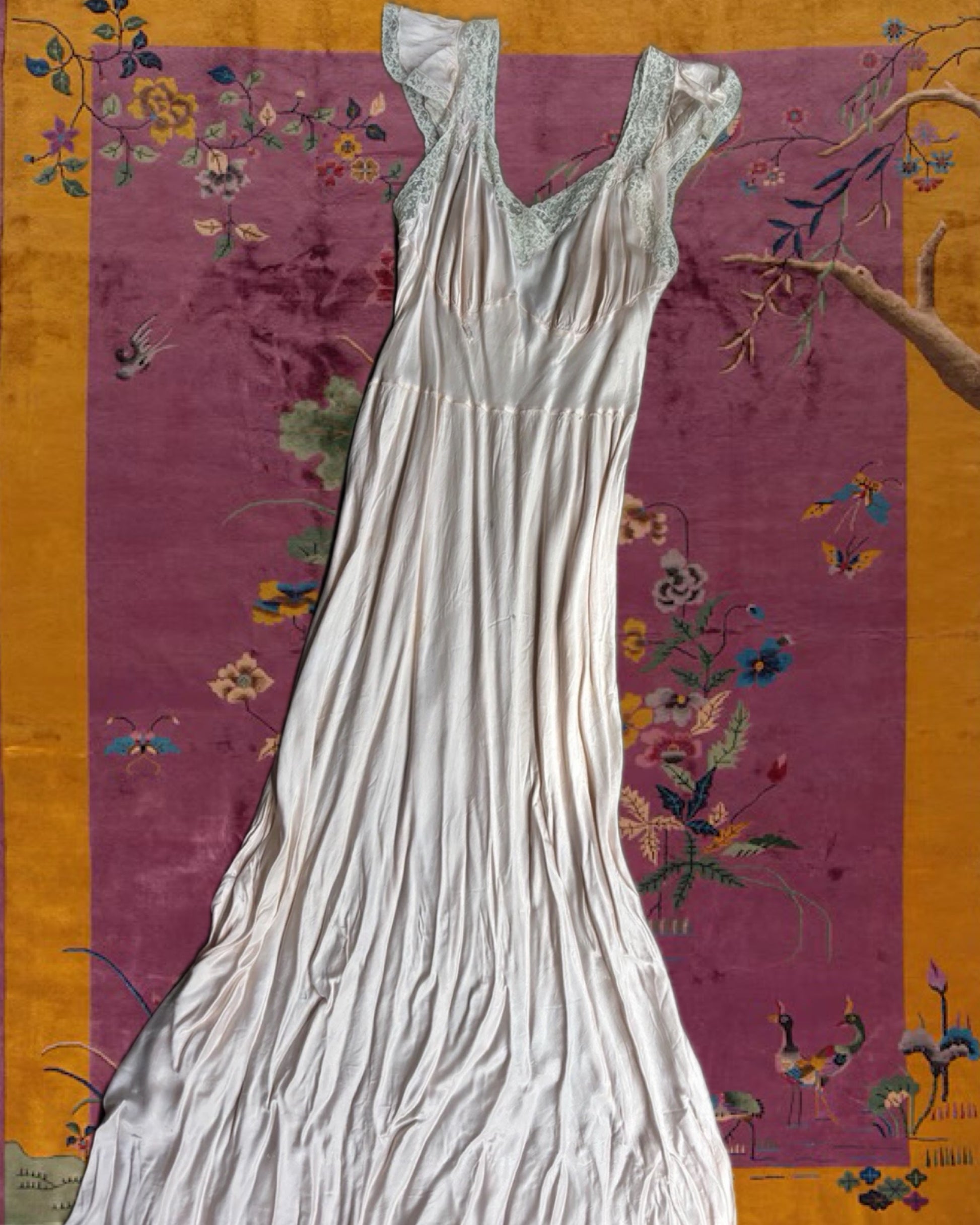 A rare glimpse into mid-century lingerie history, ideal for collectors of antique nightwear or those who appreciate the beauty of vintage textiles.